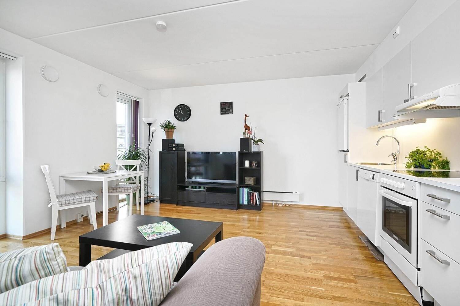 Leiligheten er i 5. etasje og inneholder gang, bod, soverom, bad- og vaskerom, stue med åpen kjøkkenløsning. Bod i kjeller. Parkett på gulv, lyse vegger, lyst kjøkken. Godt med vinduer