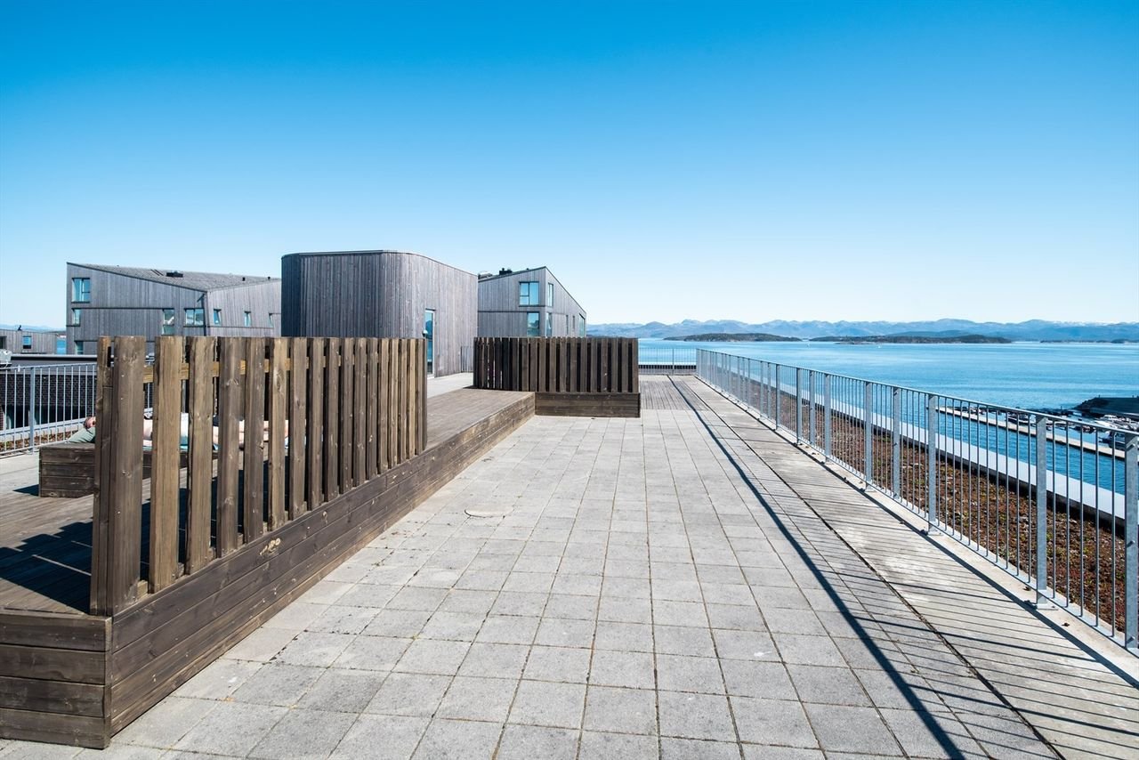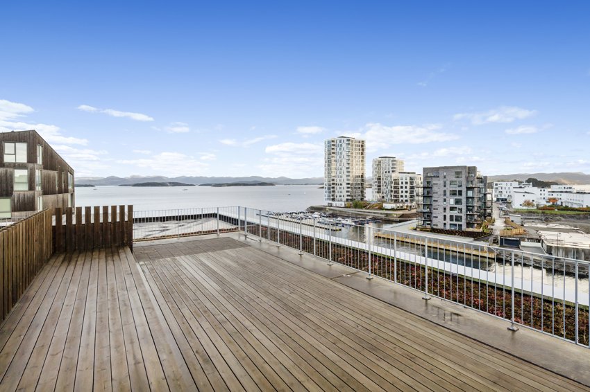 Boligen inneholder ligger i 4. etasje, like ved heis og inneholder; Gang med garderobe, bad/vaskerom, soverom, bod, stue med åpen kjøkkenløsning. Vestvendt balkong. Det er i tillegg P-plass (med elbil-lader) og bod i underetasjen. Lys, moderne og velholdt leilighet. Lyse veggflater og parkett på gulv. Pent kjøkken med god skap- og benkeplass. Alle hvitevarer integrerte. Stue med gode vindusflater. Flott felles takterrasse med fantastisk utsikt. Flott bad med gulv- og veggfliser. Gulvvarme